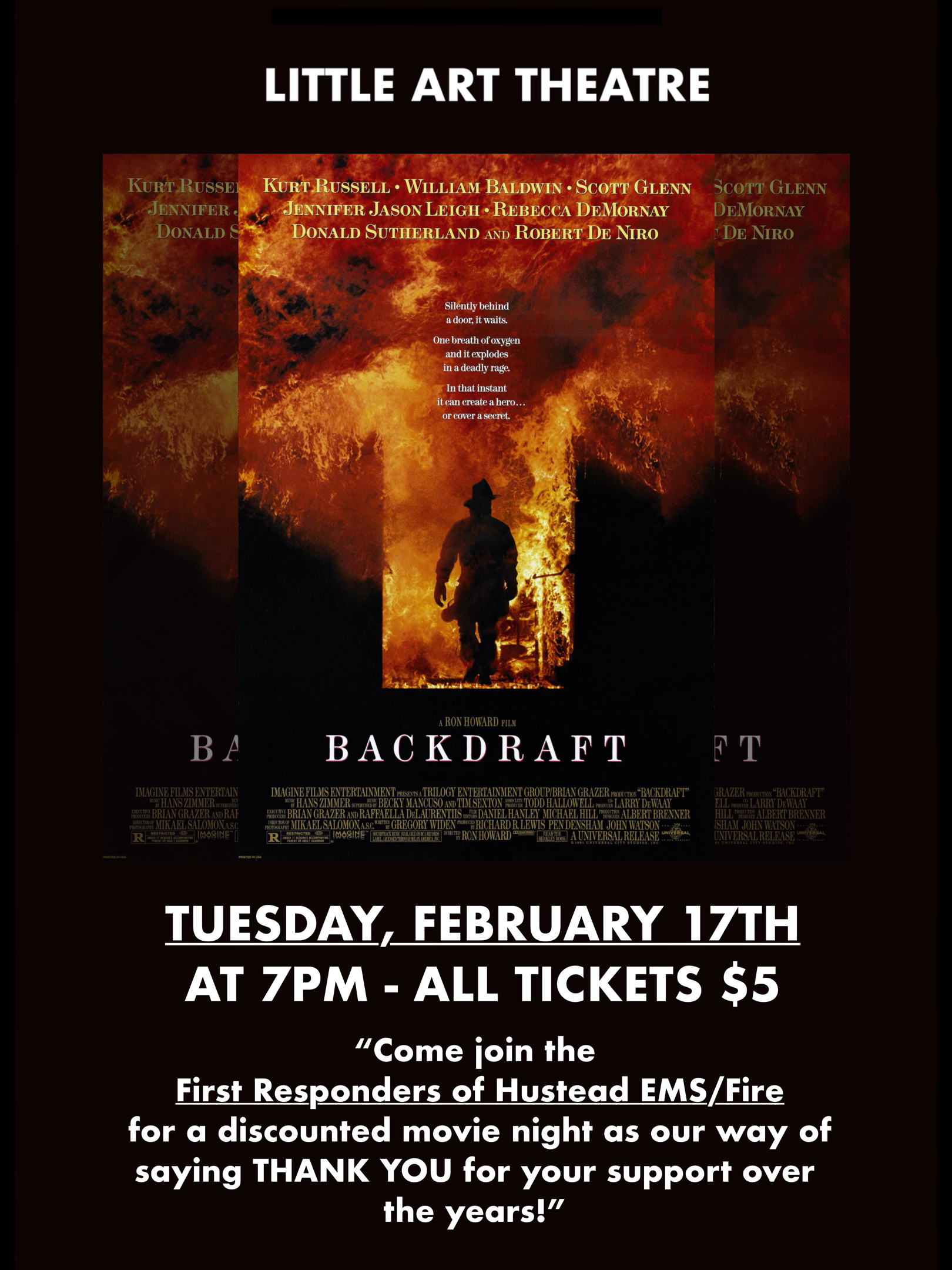 "Come join the First Responders of Husted EMS/Fire for a discounted movie night as our way of saying THANK YOU for your support over the years!"